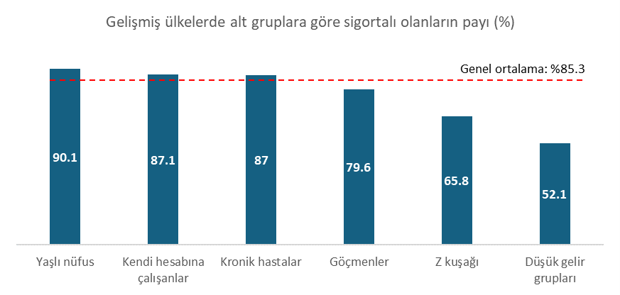 Geneva Association’ın gelişmiş ülkeleri kapsayan müşteri araştırmasına da yer verilen yazıda, düşük gelirli gruplar, gençler ve göçmenler arasında sigorta sahipliğinin genel nüfusun belirgin biçimde altında olduğu vurgulanıyor. Ayrıca araştırma bulgularının kapsayıcı sigortanın gelişmekte olan ülkeler kadar gelişmiş ülkelerde de yapısal bir sorun alanı olarak varlığını sürdürdüğü ifade ediliyor.